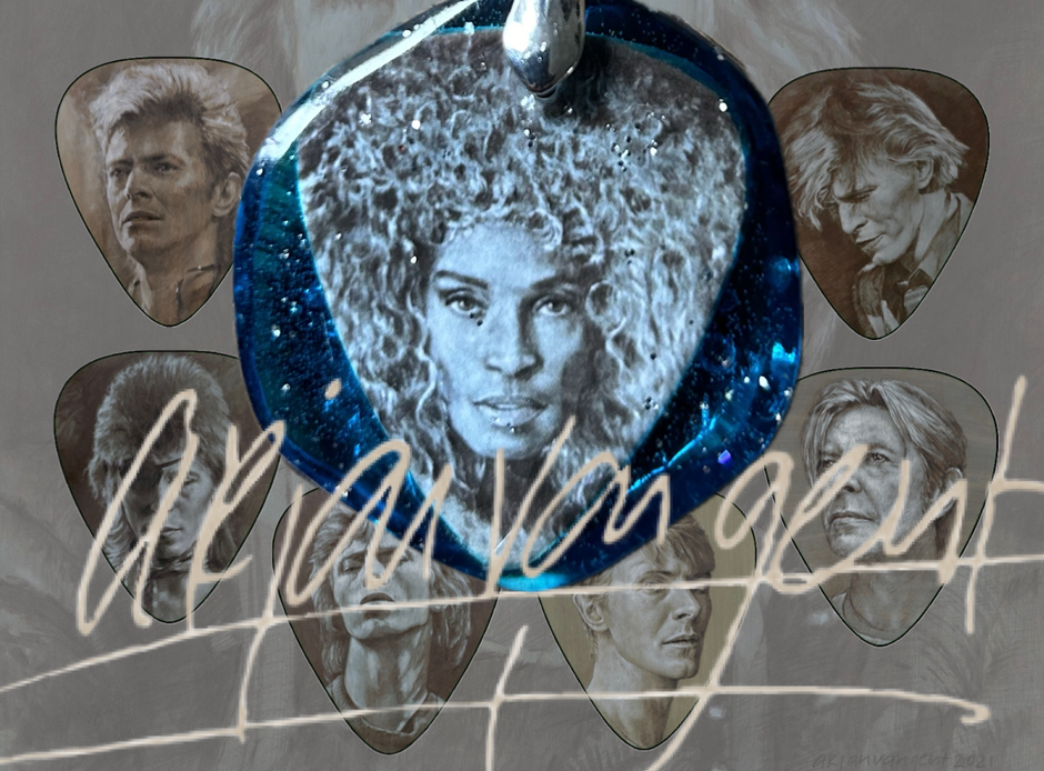 Bekende voornamelijk Amerikaanse muzikanten poserend met mijn werk in hun studio. Op de foto’s o.a. Carlos Alomar (o.a. Bowie’s musical director en gitarist) en zijn vrouw zangeres Robin Clark (o.a. Bowie, Simple Minds), Sting, Carmine Rojas (bassist van David Bowie gedurende the Serious Moonlight Tour in 1983 en the Glass Spider Tour in 1987), Alan Childs (drummer van David Bowie tijdens the Glass Spider Tour in 1987), Simon Westbrook (zanger bij o.a. A Bowie Celebration), Bruce Wallace (o.a. lighting director bij Sesame Street, manager, artist developer, choreographer) Paulette McWilliams (zangeres bij o.a. Marvin Gaye, Michael Jackson, Quincy Jones, Luther Vandross), Erik Hargrove (drummer bij o.a.James Brown en Bootsy Collins) en Mike Garson (Bowie’s piano man van 1972 - 2004). Momenteel werk ik aan mijn boek ‘Op de vleugels van mijn tijd - The Wall of Fame en andere verhalen’ over alle belevenissen rondom deze inspirerende ontmoetingen en ervaringen! Wordt vervolgd!